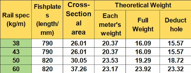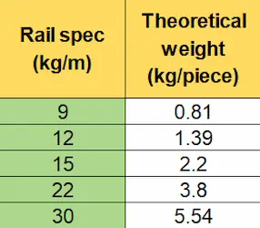 A: Common light-rail: 9, 12, 15, 22, 30 kg/m. Typical heavy rails: 38, 43, 50, 60 kg/m. Other sizes available on request.
